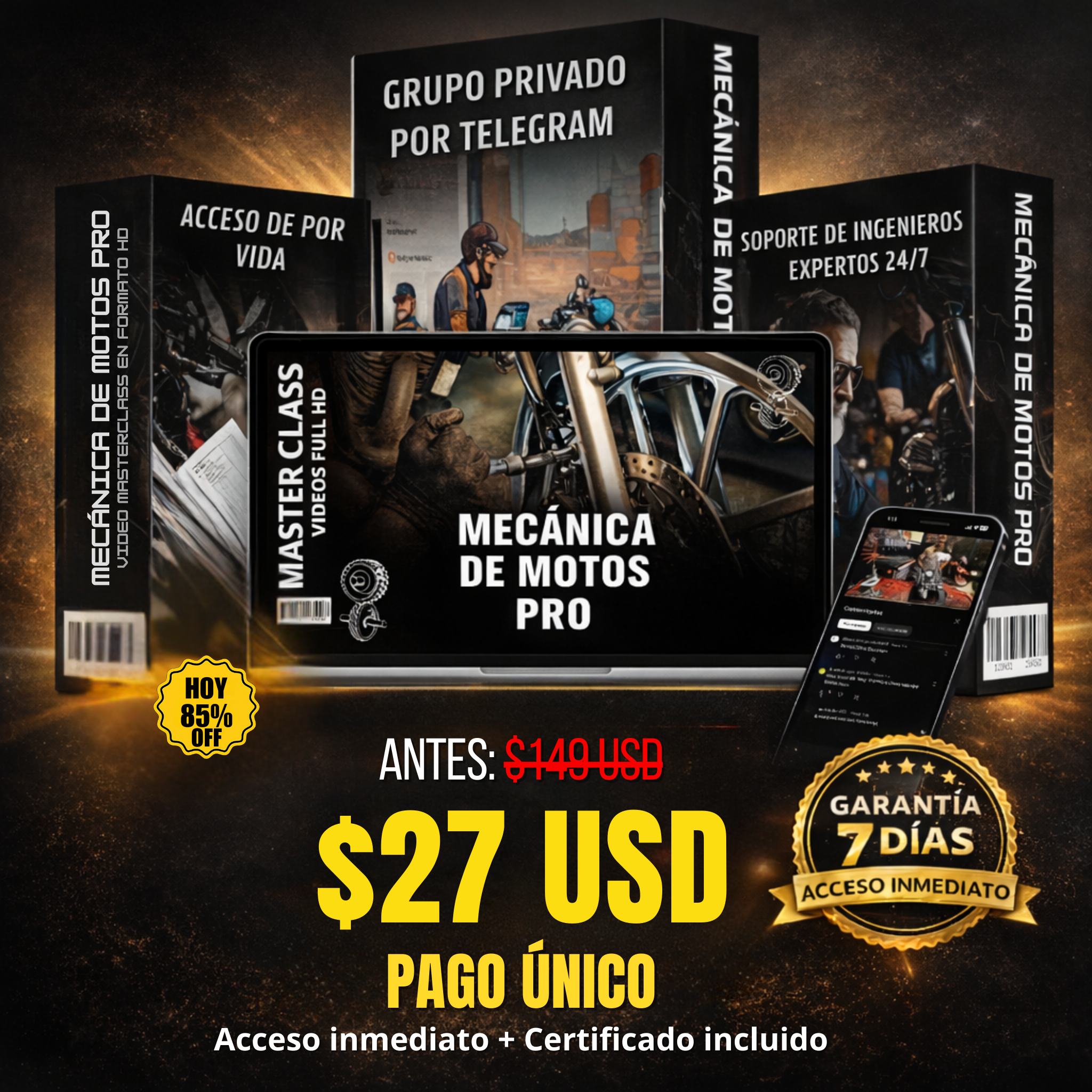 Aprende a diagnosticar y reparar tu moto desde cero, a tu ritmo, con garantía de 7 días en Hotmart.🔒 Pago único · Acceso inmediato · Garantía de 7 días